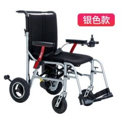 N5513A电动轮椅车轻便折叠老年人残疾人代步车 银色双锂电池.